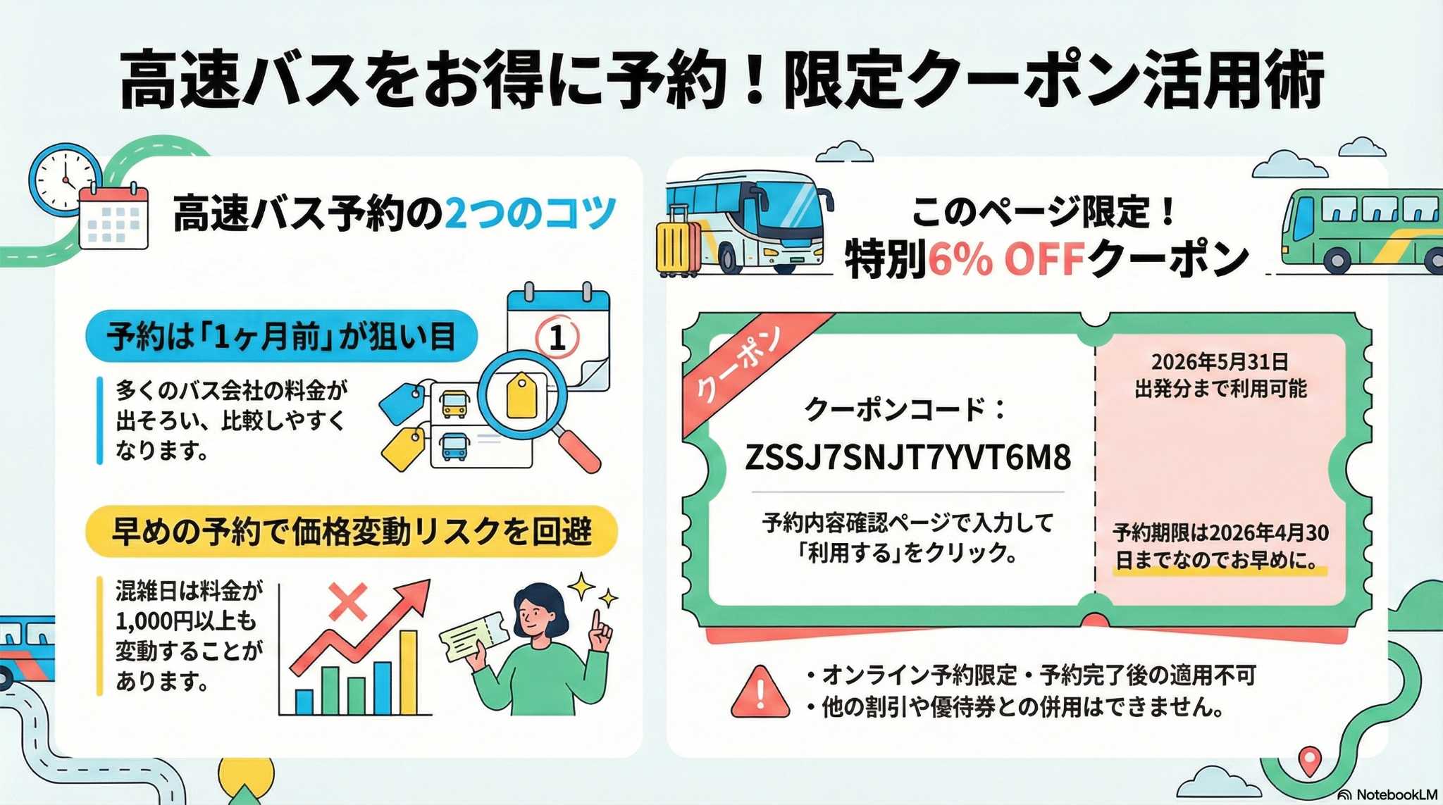 HIS高速バスページ限定 5月まで使えるクーポン6%OFF